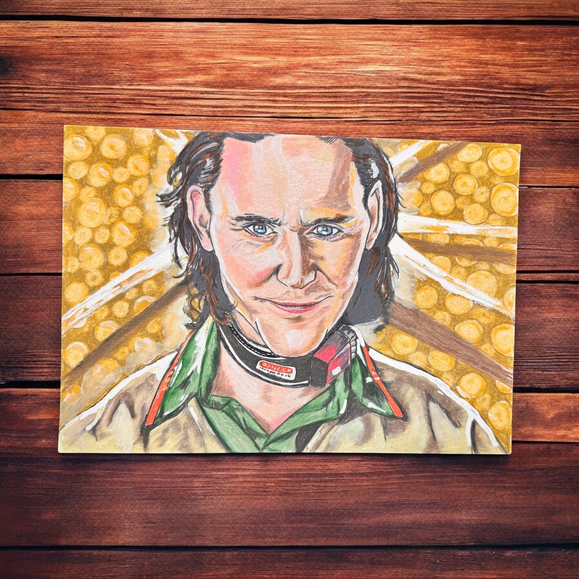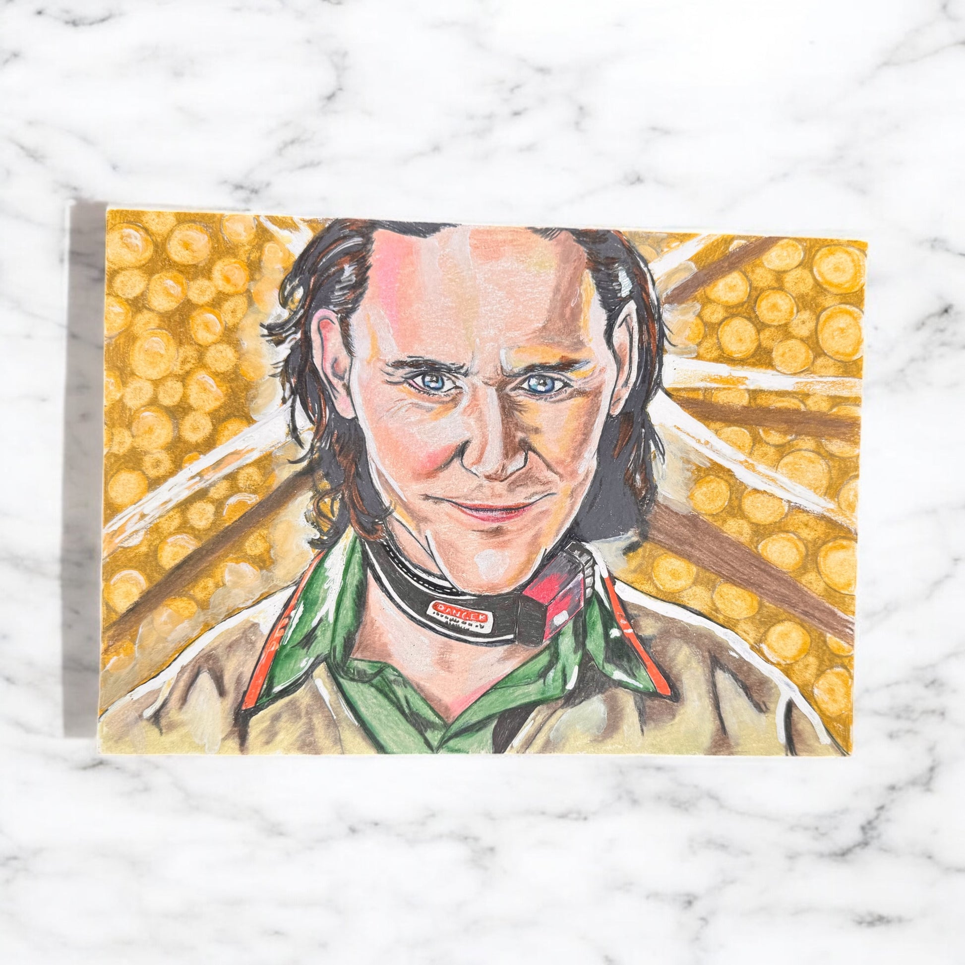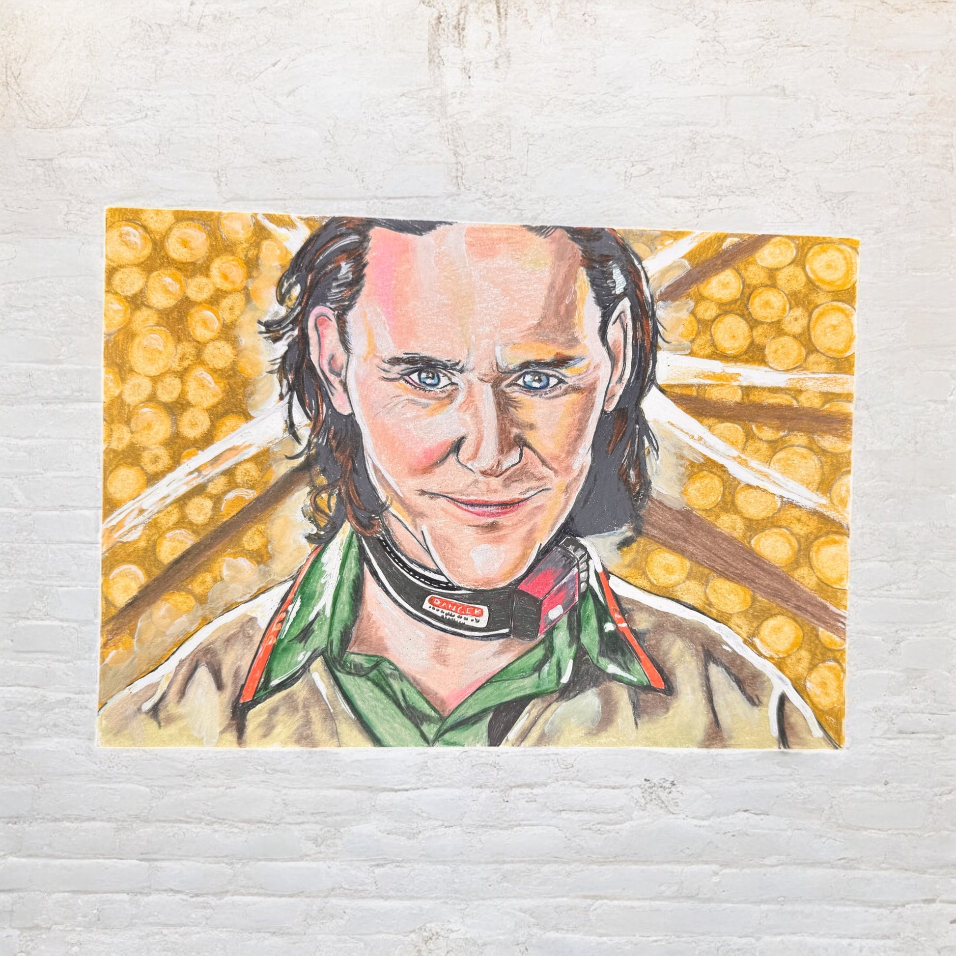 Loki Variant is a 7x10 inch colored pencil drawing inspired by Marvel’s Loki series. Capturing the mischievous charm of the God of Chaos himself, this fan art pays homage to his multiverse-hopping identity with vibrant colors, sharp contrasts, and expressive realism.