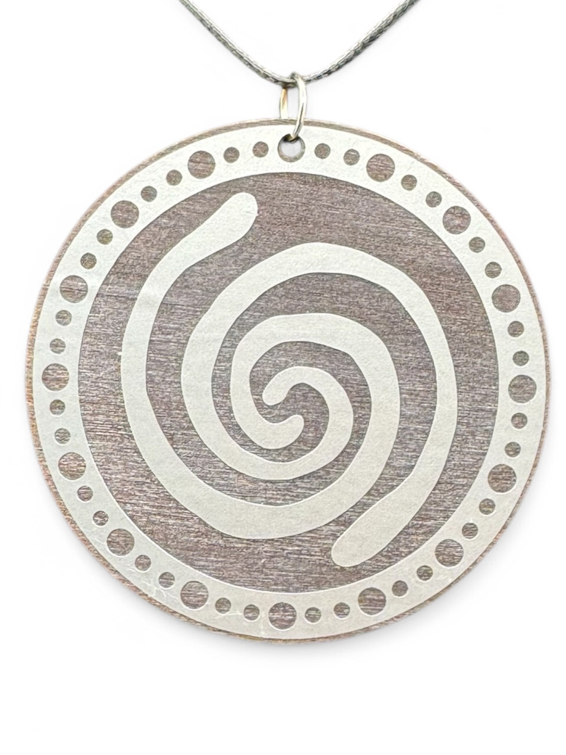 Rooted in heritage and meaning, this unisex 3-inch hand-painted wood pendant features the Taíno symbol for water—representing life, flow, and spiritual renewal. Detailed with bold vinyl accents and suspended on a sleek cord, this statement piece from the Talindo line is designed for all genders. Whether worn as a tribute to ancestry or as a symbol of personal strength, it carries powerful energy and timeless style for anyone who wears it.
