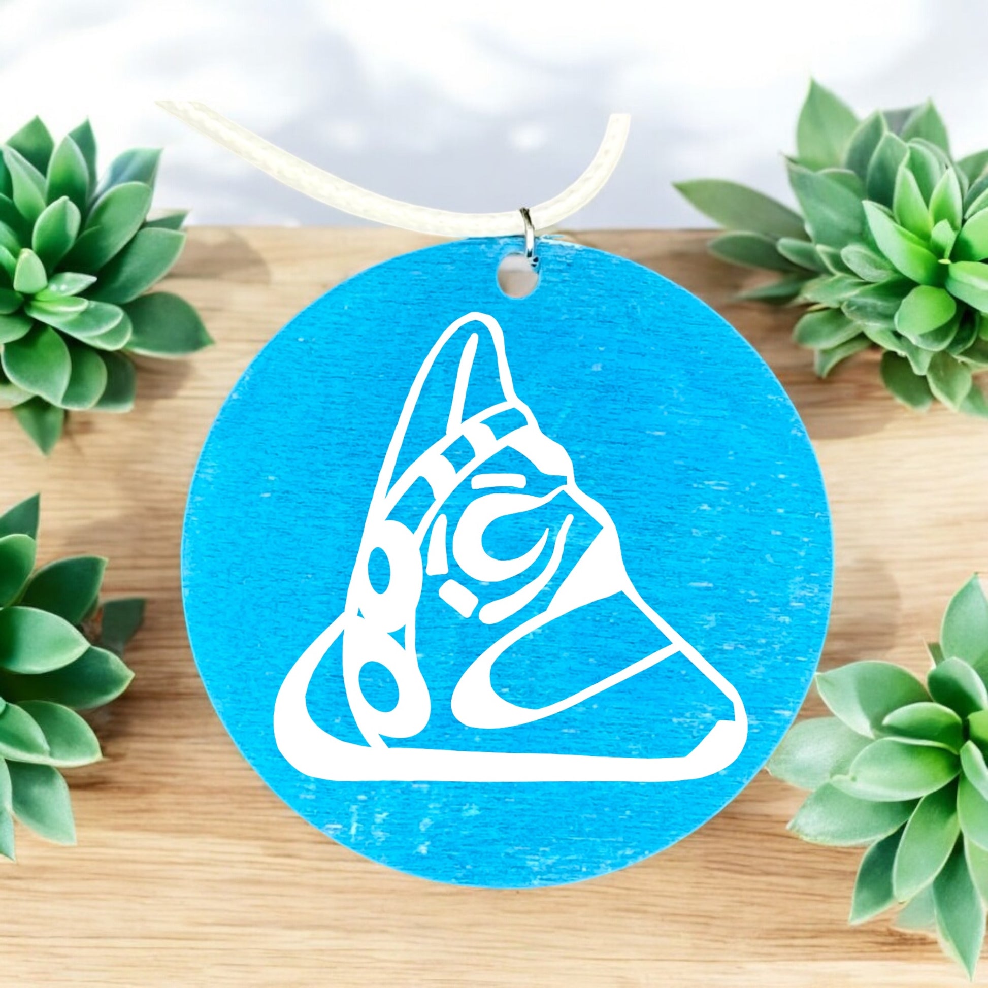Hand-painted 2 inch wooden circular pendant featuring the Taino petroglyph Trigonolito or Yucahu, the masculine spirit of fertility in Taino culture. He, alongside his mother, Atabey, was the supreme zemi (deity) of the Taino people. The pendant is available in several colors and made to order. The pendant hangs from a 20 inch wax sealed necklace cord.